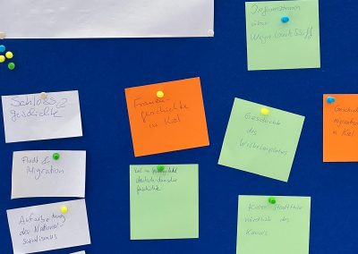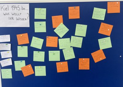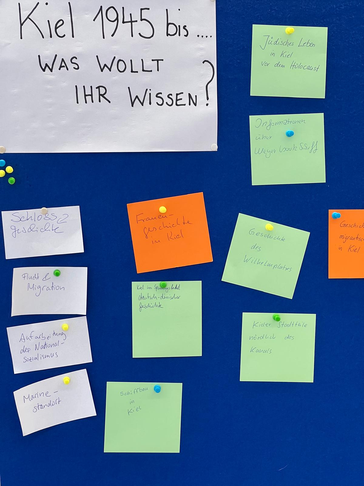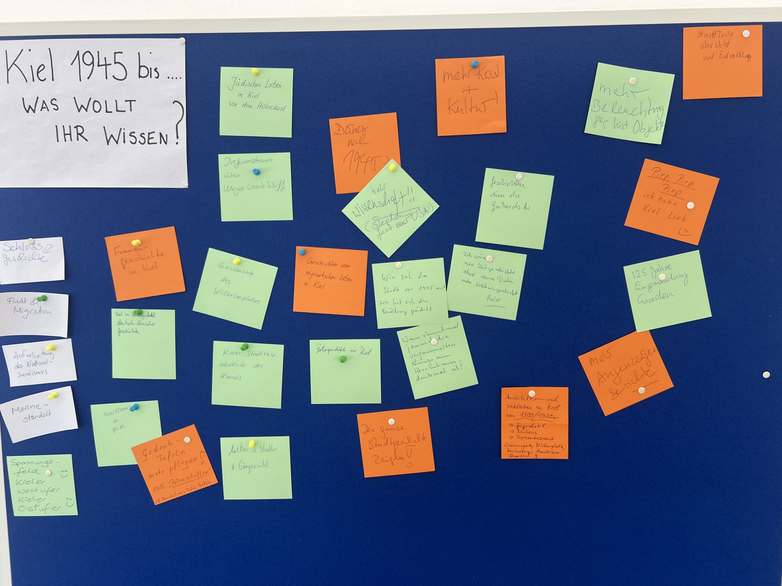 An unserer Pinnwand konnten die Besuchenden festhalten, was sie sich für die Stadtgeschichte in Kiel wünschen.