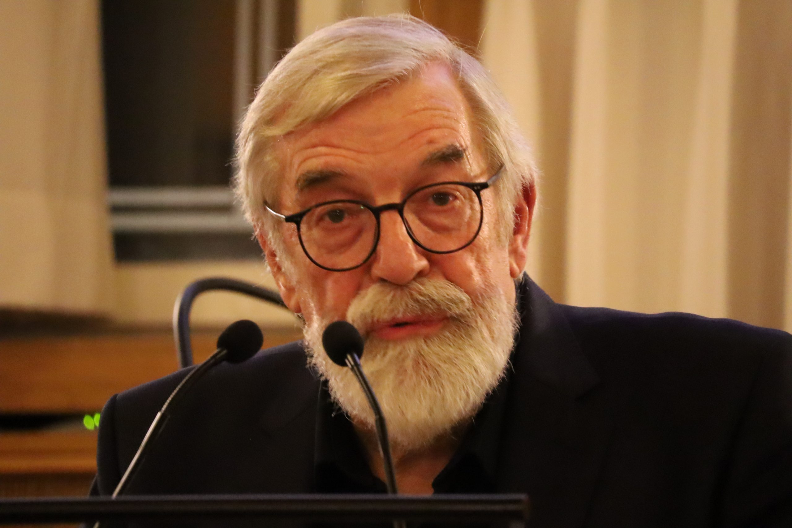 Auf dem Foto oben sind die zahlreichen Gäste der Veranstaltung im Kieler Ratssaal sowie Rolf Fischer am Podium zu sehen. Foto: © Regina Baltschun